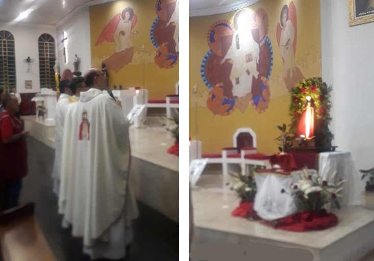 Padre Luiz Carlos Trader, do Santuário Nacional de Aparecida, reza missa na paróquia.